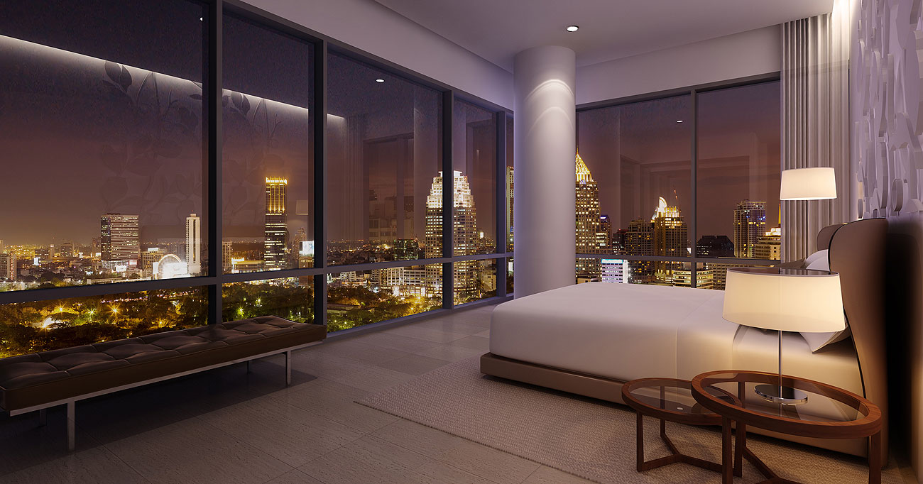 • Resident's lounge with panoramic views of Lumpini Park and central Bangkok.